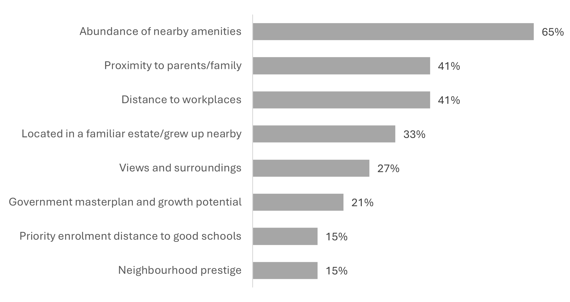 Chart 6: Young Singaporeans rank nearby amenities, proximity to family, and distance to workplaces as their top three locational attributes