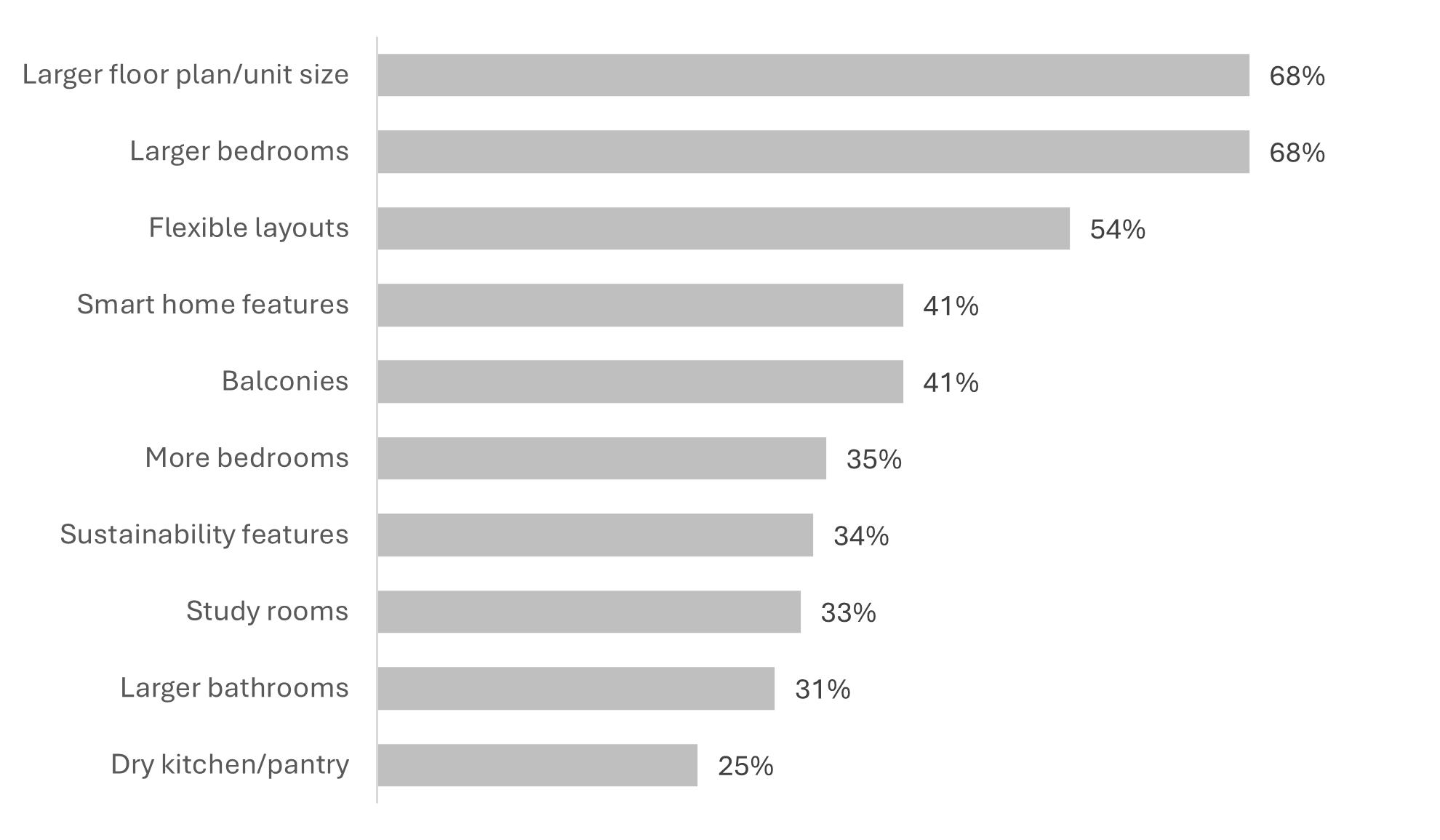 Chart 5: Larger unit sizes and bedroom sizes are sought after by Young Singaporeans – instead of more bedrooms, indicating a priority for larger spaces to suit their social lifestyles